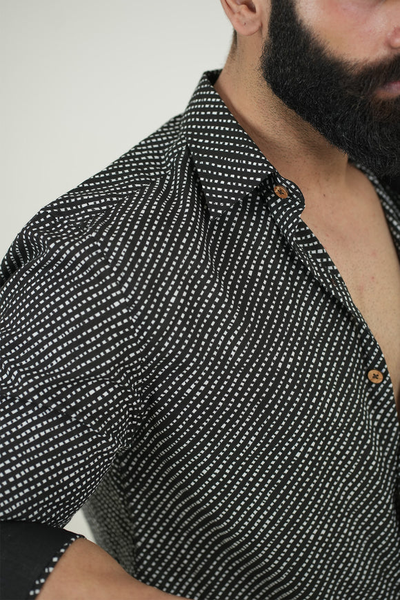 Black Diagonal Stripes Print Full Sleeves Shirt | Style Matters