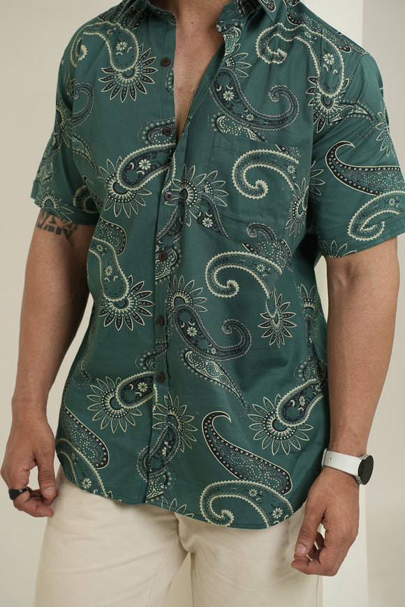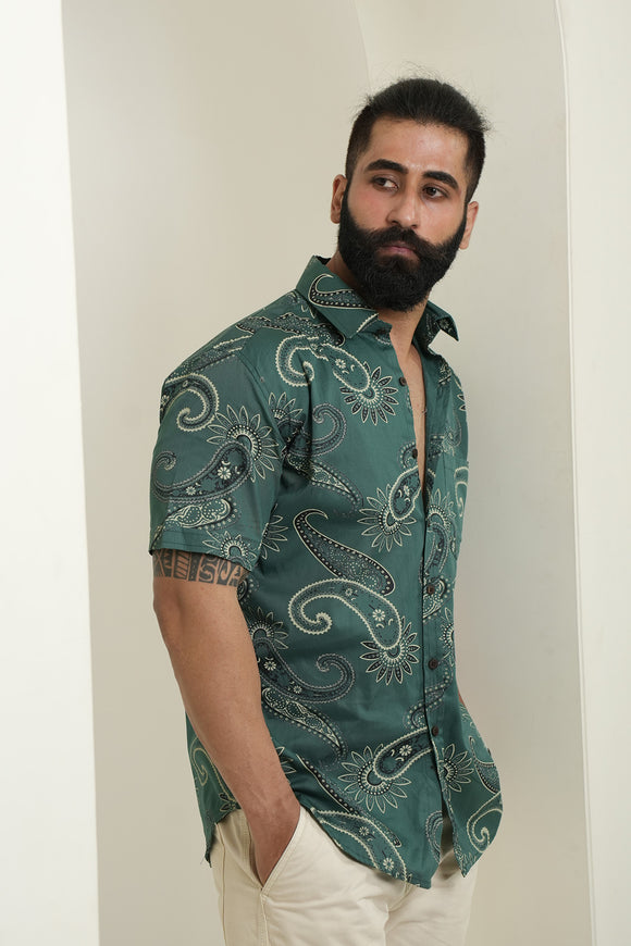 English Green Shirt with Paisley Print, Half Sleeves | Style Matters