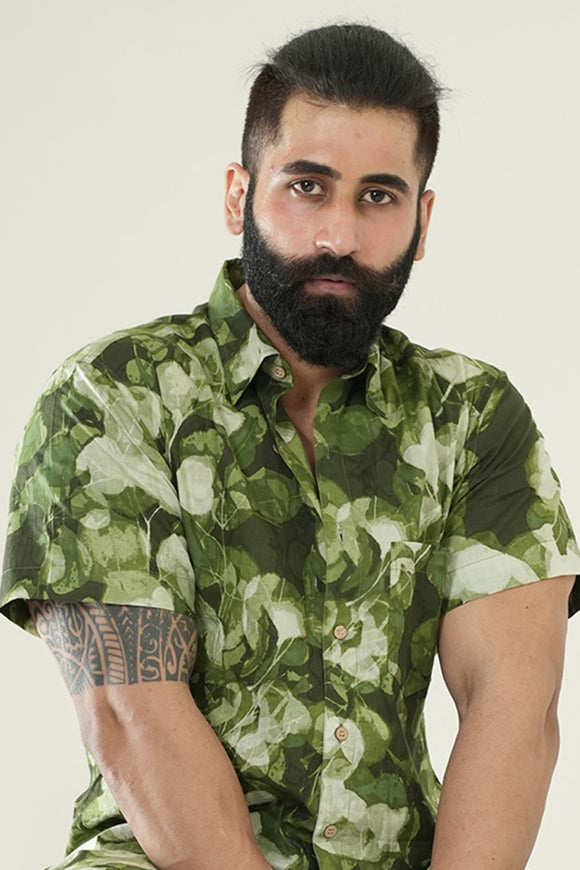 Green Shirt with Leaves Print, Half Sleeves | Style Matters