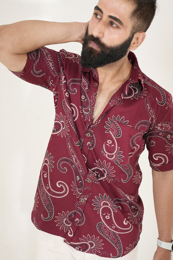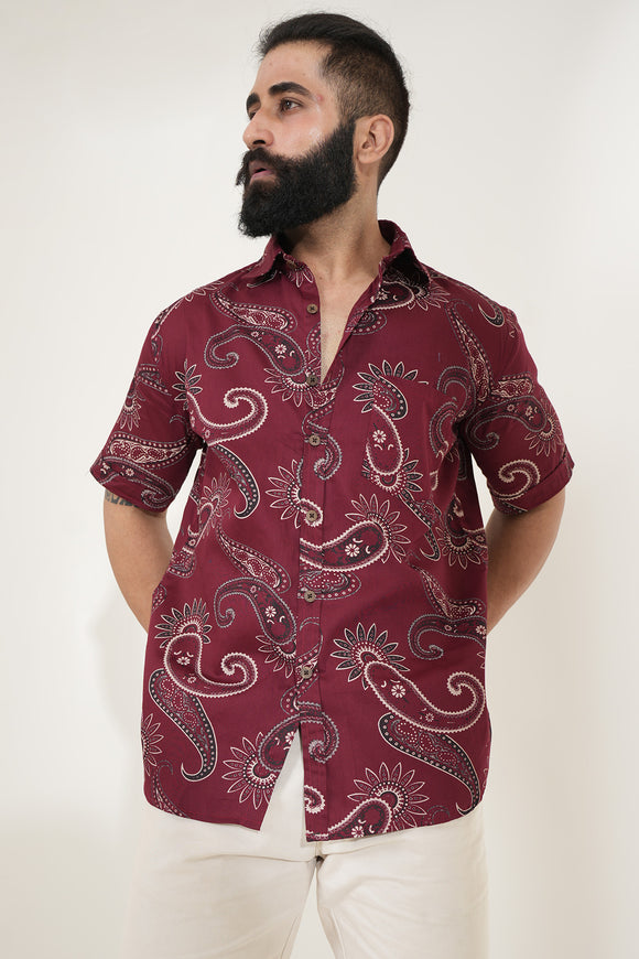 Maroon Shirt with Paisley Print, Half Sleeves | Style Matters