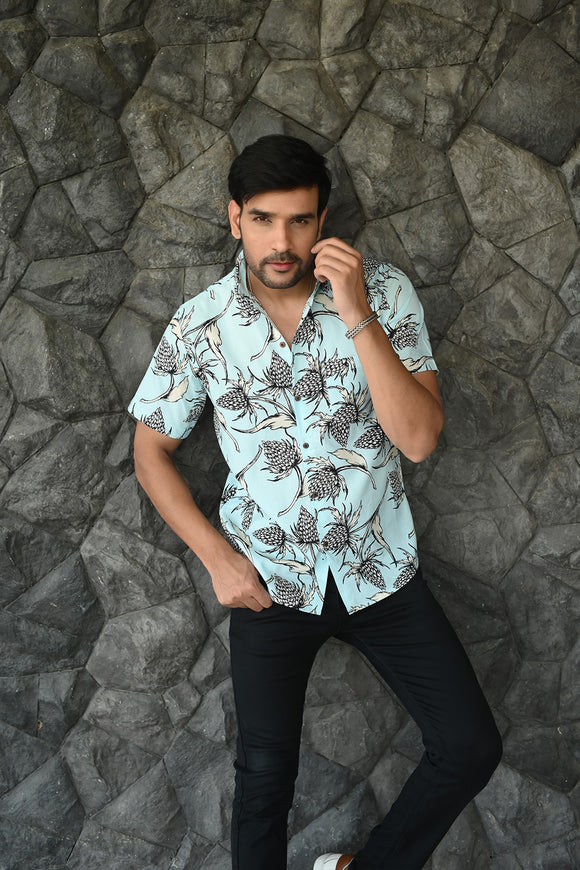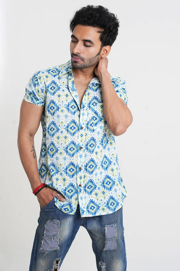 Blue Bunch print cotton shirt half sleeves | Style Matters
