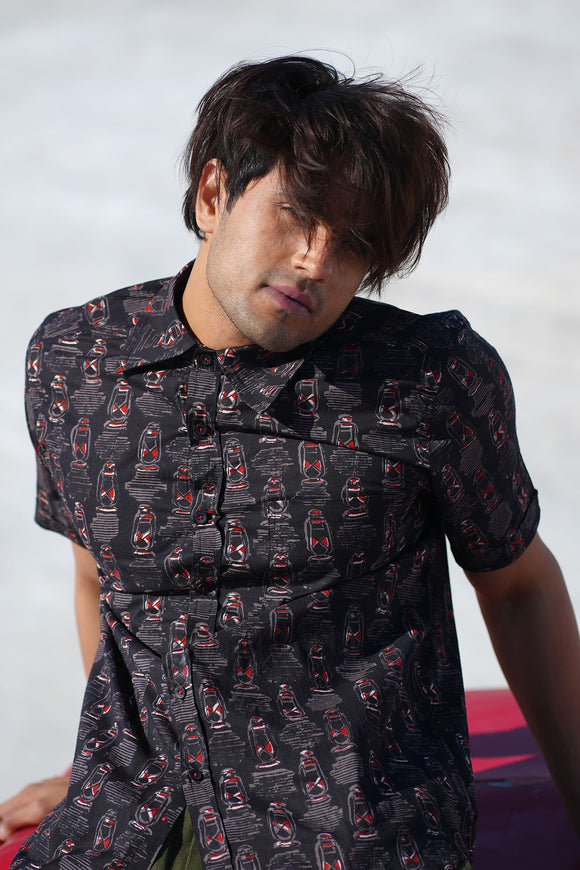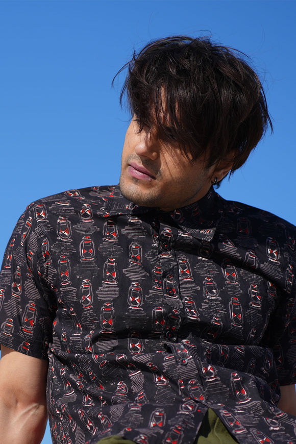 Black color Lamp print cotton shirt for summers half sleeves | Style Matters