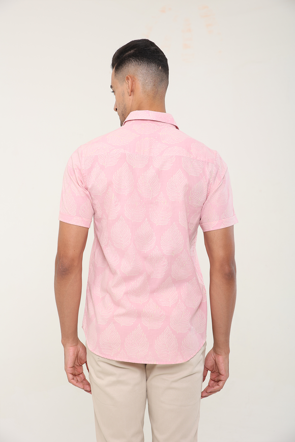 Pink Palm print cotton shirt half sleeves | Style Matters
