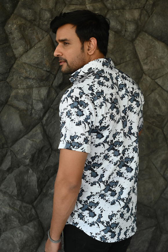 Slate Spray print cotton shirt half sleeves | Style Matters