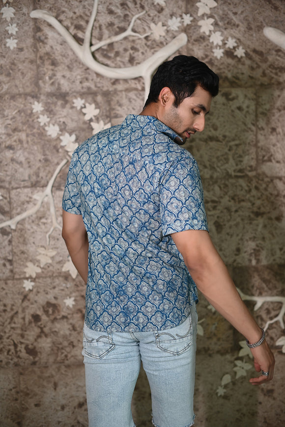 Blue Coins print cotton shirt half sleeves | Style Matters