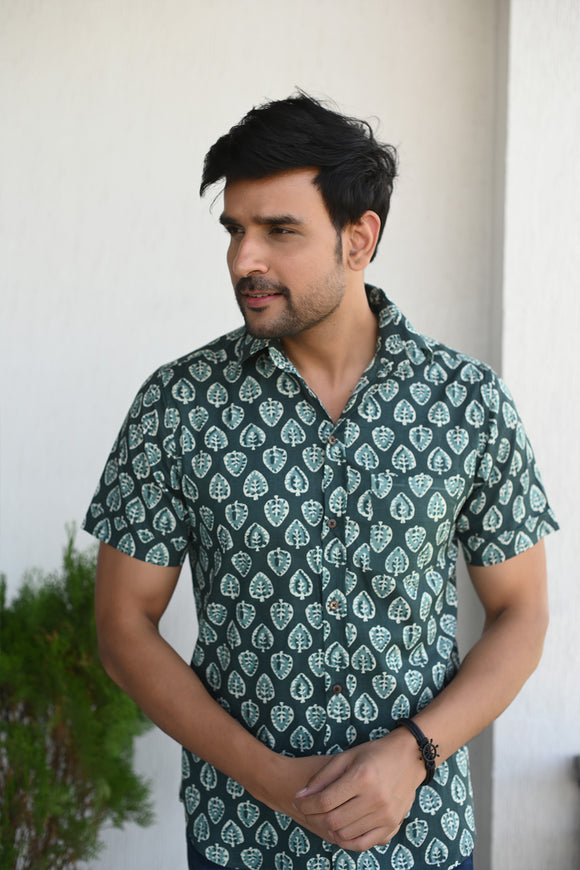 CamoGreen print cotton shirt half sleeves | Style Matters