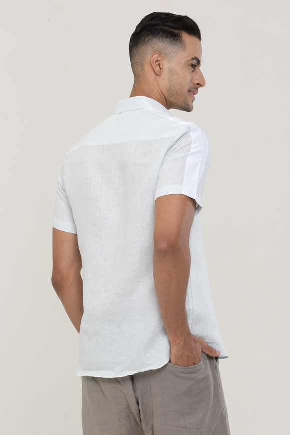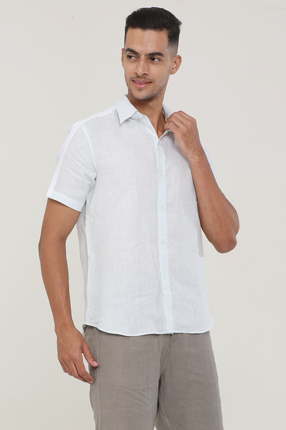 Linen Ice Blue plain half sleeves | Style Matters
