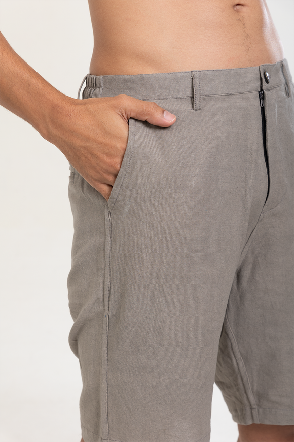 Silver Grey color Linen Cotton plain shorts | stylematters