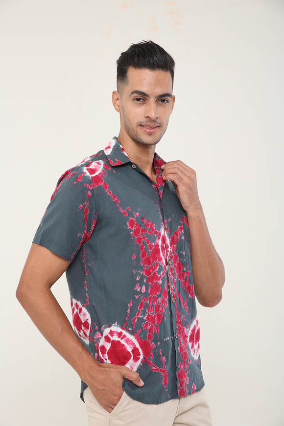 Grey Pink Tie Dye cotton shirt half sleeves | Style Matters
