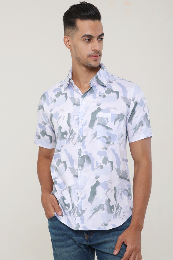 Camo Blue cotton shirt half sleeves | Style Matters