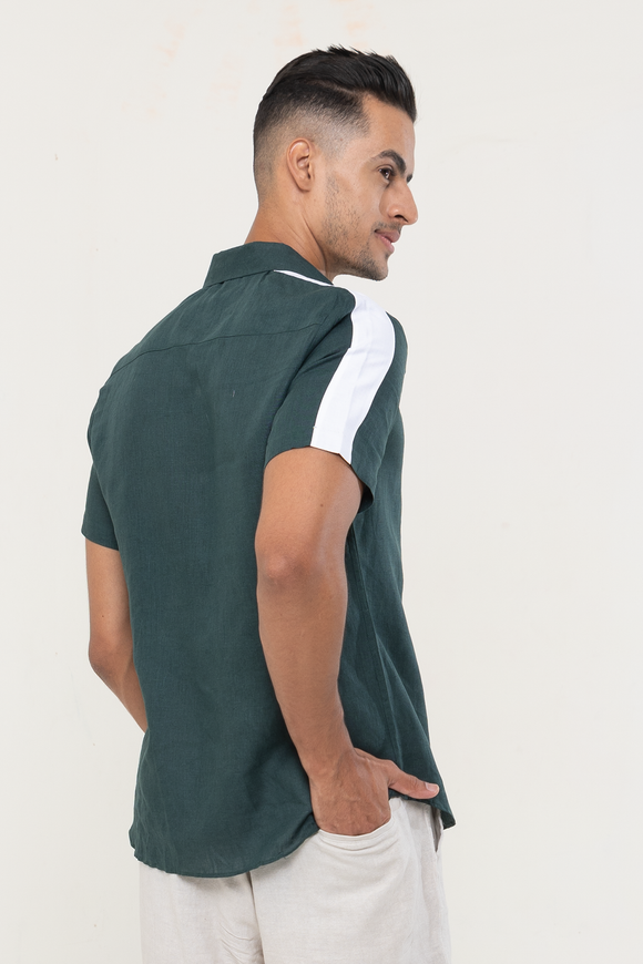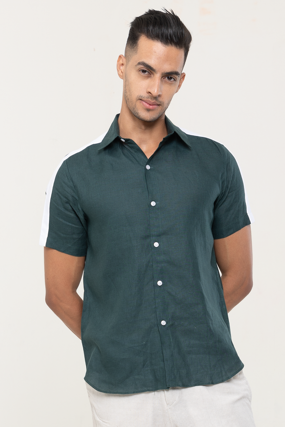 Linen Dark Green plain half sleeves | Style Matters