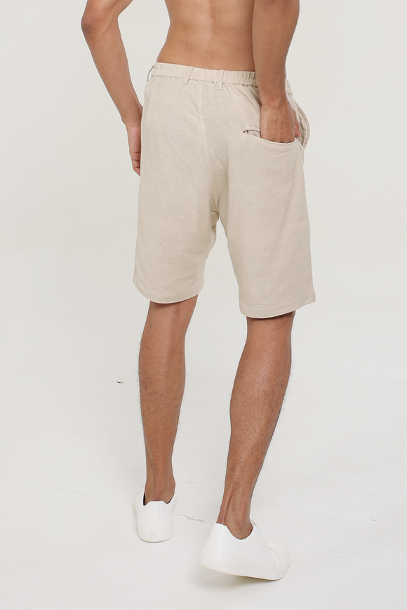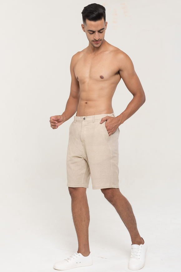 Khaki Linen Cotton plain shorts | stylematters