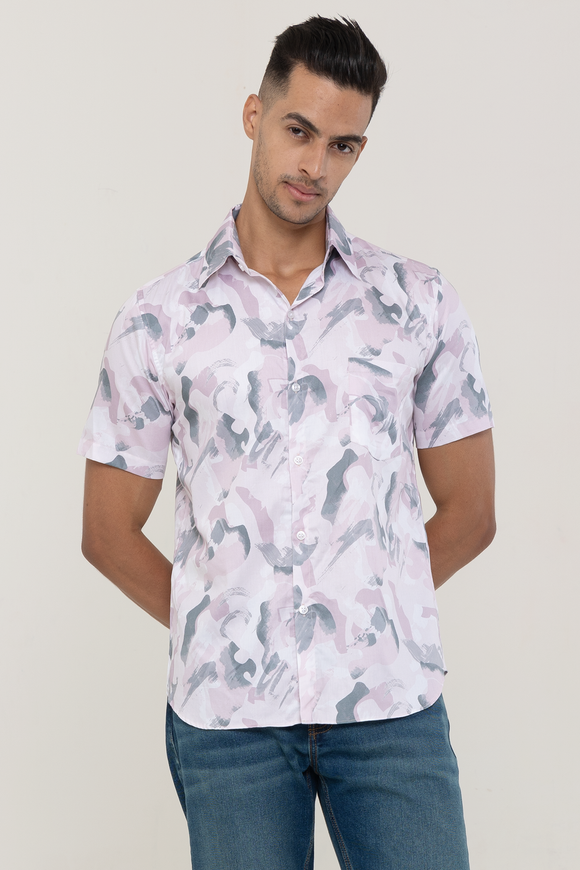 Camo Pink cotton shirt half sleeves | Style Matters