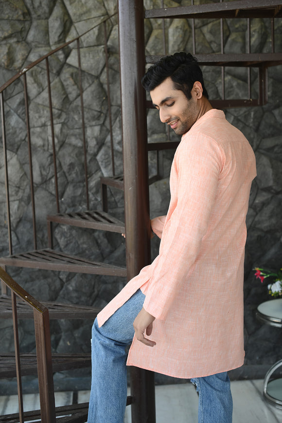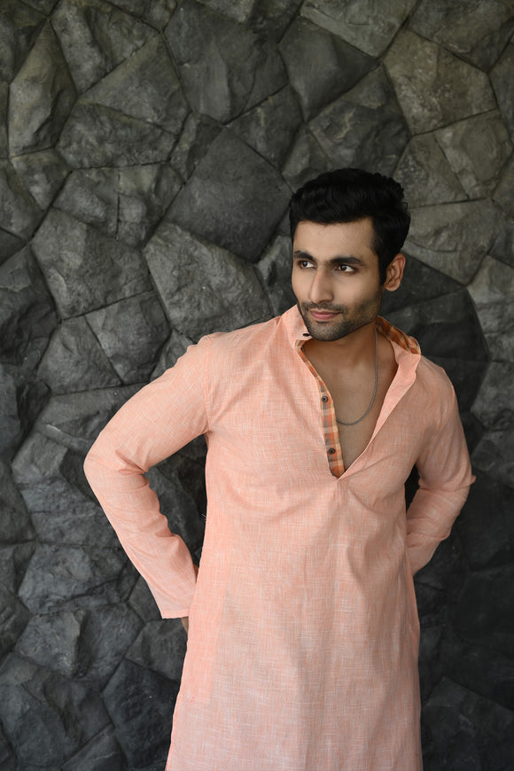 Long Kurta Plain Orange Khadi Fabric | Style Matters