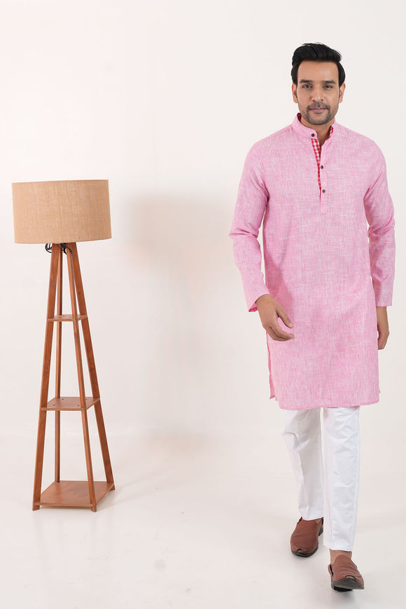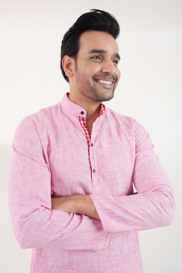 Long Kurta Plain Pink Khadi Fabric | Style Matters