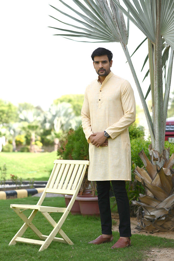 Long Kurta Plain Yellow Khadi Fabric | Style Matters