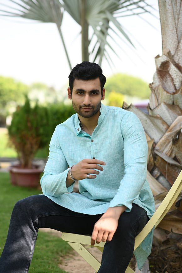 Long Kurta Plain Green Khadi Fabric | Style Matters
