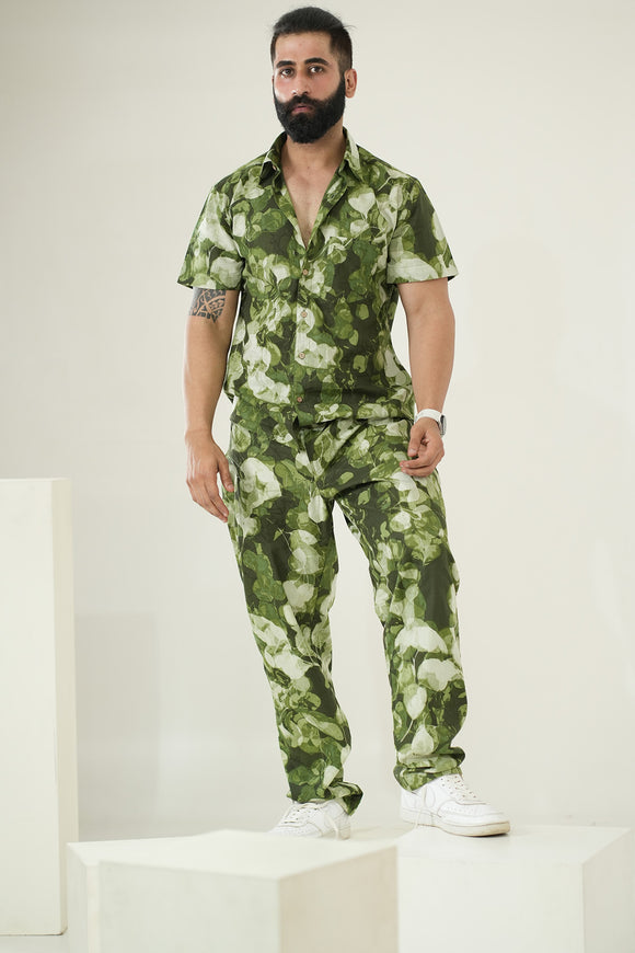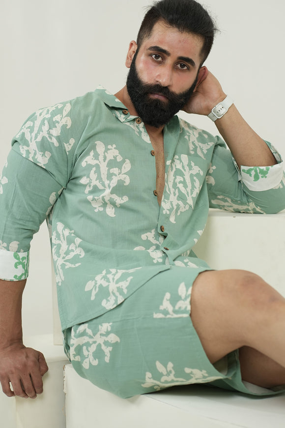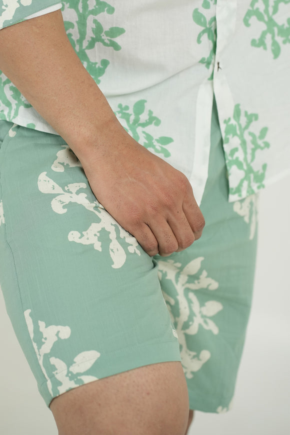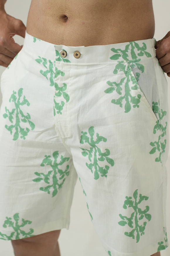 Green Shorts with White Motifs Print, Only shorts Part of Coord Set | Style Matters